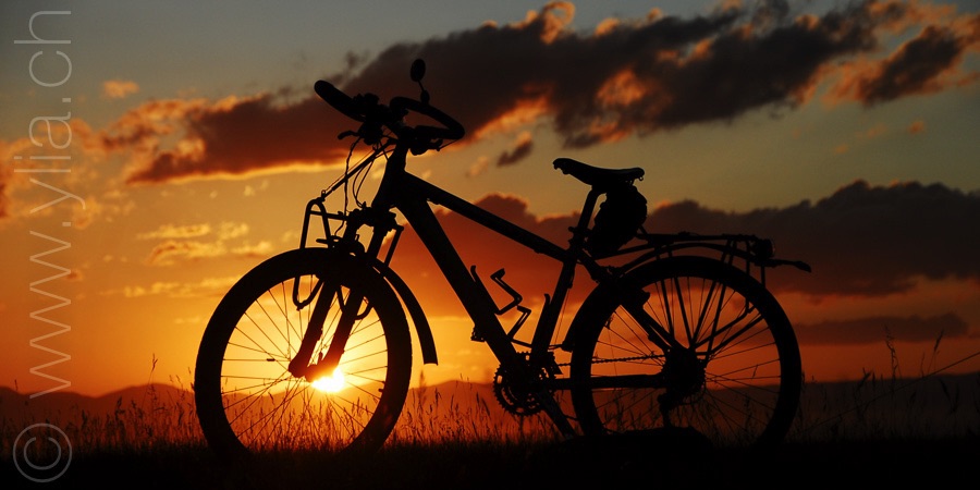 As we cycled on a dirt road that opened out new panoramas, a blue luminosity enlightened the scenery, a luminosity that would become a symbol of these mountainous land. The jailoo spread out under abrupt slopes where most of the summits were still white from the snow. The visibility was so clear that we could distinguish the purple dot of the flowers that bloomed in these meadows. Further, arid mounts formed of golden and red soil contrasted with a small valley where the dark green firs grew. And the smell of its needles perfumed the air with a delicate flavour that enlightened us.