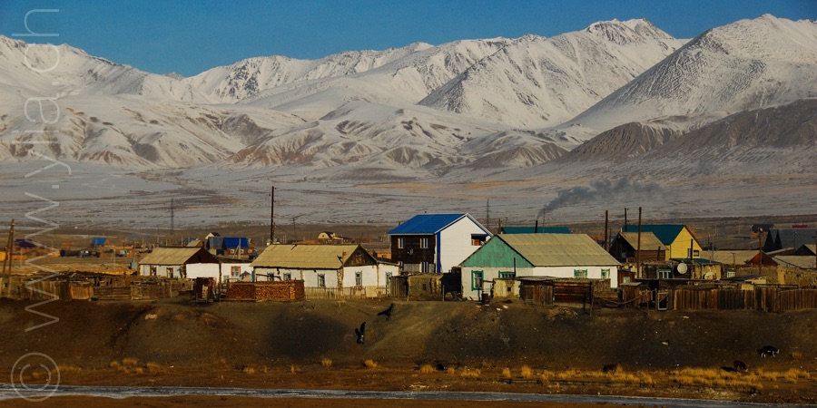 The daylight decreasing quickly at this time of the year, the sunrays are just a tender kiss on your frozen ground. The negative temperatures reveal a crystalline universe. The glacial wind blows the smoke of each of the chimney of Kuray away. And the colourful flats of the small wooden houses give some bright colours in your aquarelle world.