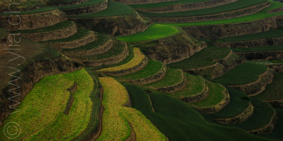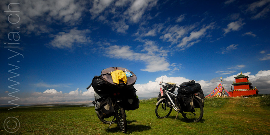 China is a never ending modification of our environment, we keep moving, cycling long distances in order to reach our destination, some 6'000km away from Shanghai. We went from booming cities to the powerful silence of the desert, from the bright green of the rice paddies welcomed by the stare of the buffaloes to the barren plateau of white rocks at 3'000 m elevation, we went from the endless flat landscapes to the high summits illuminated by the eternal snow, we went from the mountainous land of yak herds in the world of the Tibetan people, in the world of the prayer flags, to gigantic canyons of sand dunes, we went through multicolour terrace fields welcomed by the playing spirit of donkeys.