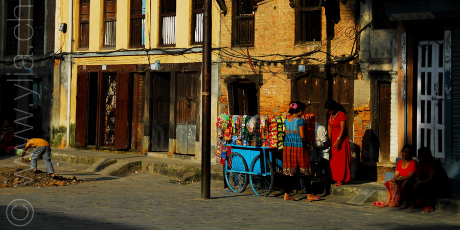 The prayer flags, the stupa, the loving and compassionate Buddha, the Tibetan medicine and the vibration of the singing and healing bowls, the mantras echoing in the Gompa, the praying wheel, the powerful scent of the incense, the spiritual energy of Bodhnath Stupa. Imbricated in the same places, it is the Hinduism with its bright red that create a strong energy within the sacred. It is Pahupatina, the spiritual center of Hinduism that radiate its powerful link with Shiva, its golden bull, its secular traditions of cremation where the ashes are then delivered to the river that lead them to the Ganges, the way to the afterlife. It is the cycle of reincarnations and the social play of casts, it is the 30 millions of Gods to pray. It is the creation of Brama, the preservation of Vinshnu and the destruction of Shiva. It is the blood sacrifices to Kali. It is the pujas, the morning offerings, the ceremonies and the festivals happening during fall. It is the red tika of the third eye and the Ayurvedic medicine. It is the temples spread in each small alley of the city. Finally the sacred is found in the spicy smell of the traditional milk tea and the Dal Baht, the main dish made of rice and lentils. The sacred is the swirling valse of the colors of the saris and the odors spreading in all places, it is the contrast between the purity of the high acme in the vastness of these landscapes and the perpetual movements in the samll alleys of shadows.