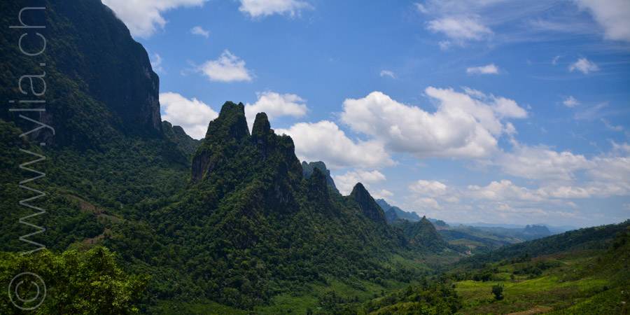 However, as we entered the mountainous land of Northern Laos, the butterflies followed us on the road, in a world that enchanted us. A place, where the green mounts appeared across the scenery, beyond the horizon, a place where the water points became meeting places, a place where the lightenings burst with power, a place where the mist followed the rivers, a place where the shape of karstic mountains revealed splendid landscapes. There, the air had the scent of altitude, of flowers, of nature. The roads navigated within the scenery in thousands curves, they were built on the land, following each line, each ridge, each slope. The dense forests could be seen on the horizon, but the slash and burn method of cultivation took the first place on the stage, at time sadly. Yet, the beauty of the panoramas brought us a breathe of freedom, feeling as light as a feather.