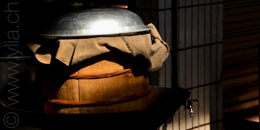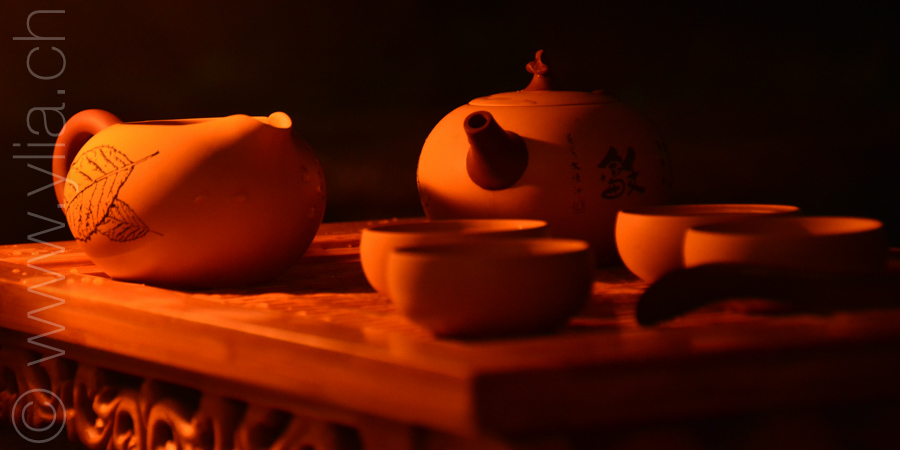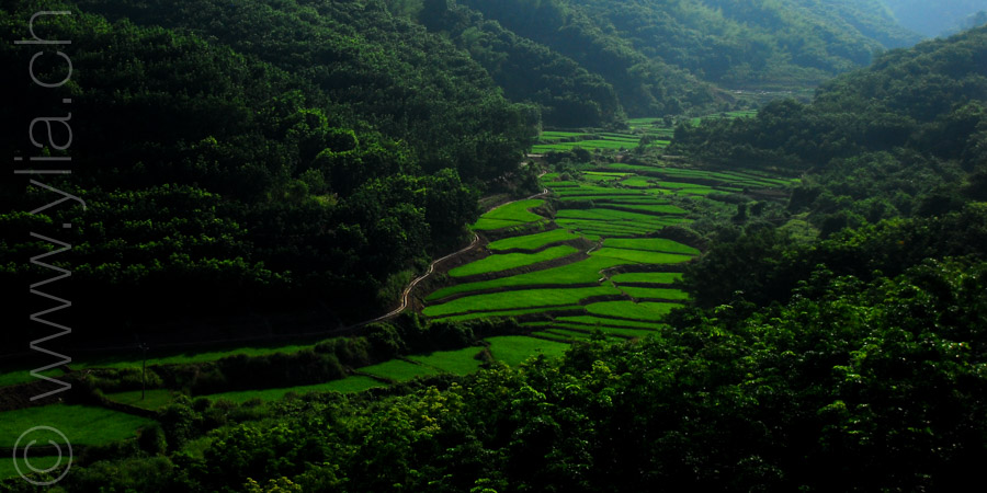A first wave of freedom takes us over the rubber plantation, having the feeling we are flying over these endless forests of hevea, as we cycle on the freeway that crosses over the landscape with bridges and tunnels. Then we enter splendid tea plantations, on a gigantic plateau where the trees streak the scenery in a dark green. We are in the heart of one of the most ancient Chinese tradition, the art of drinking tea. Tea that will remain the link between us and the land, us and the Chinese population during all our time there.