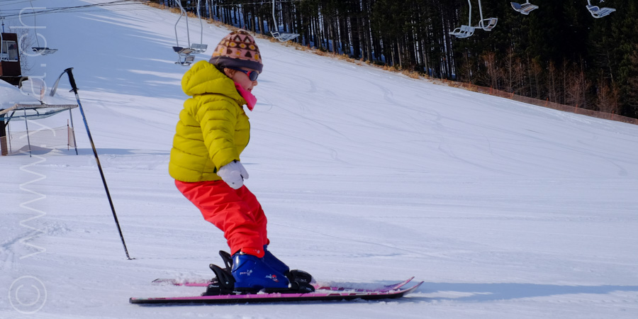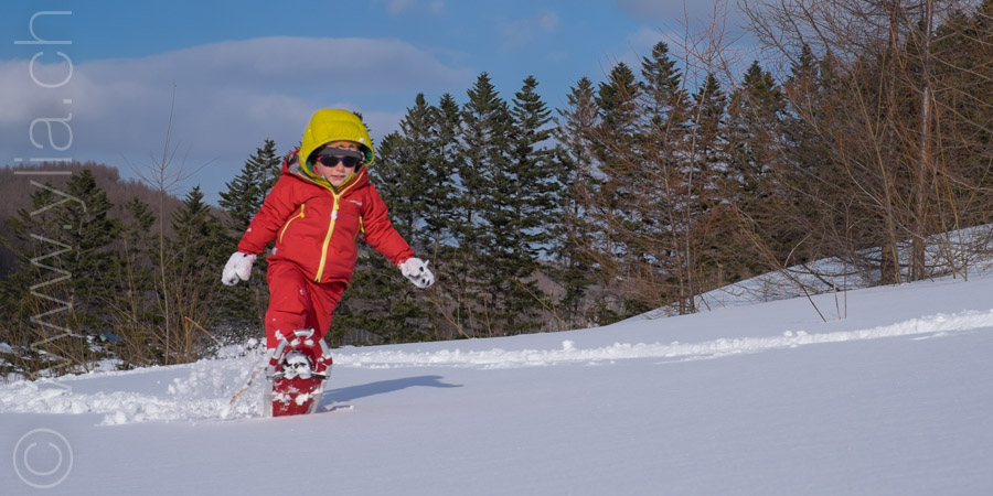Staying in the small town of Minamifurano, we enjoy its ski resort, which will prove to be virtually private. We are the only ones going down the slopes. Finally, Nayla can ski again. Since the first snowfall in October, she has not stopped insisting, remembering the joys of skiing. Thus, she slalom between the pegs, dance on her skis, and is thrilled by the sensation of speed.