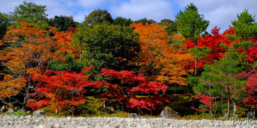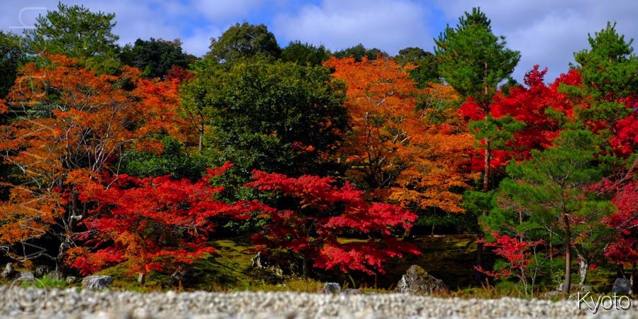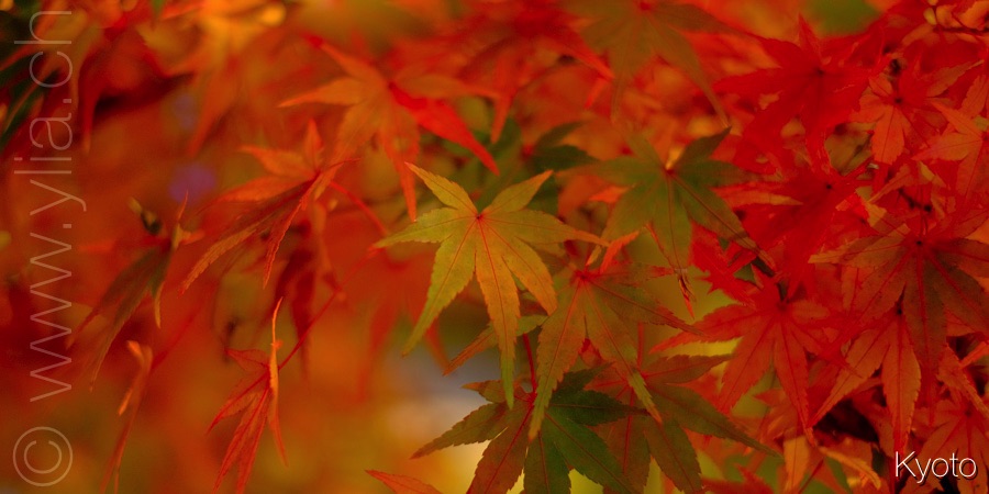 In Kyoto, trees showed their finest fall colours. The tint are fantastic, especially the maples leaves and their bright red. The zen gardens of the temples are illuminated with flamboyant colours, in unique and fabulous creations. Next to the sacred monuments, an alchemy appears. It gives us an energy of fire and light. A dance to life and its beauty, a radiating joy.