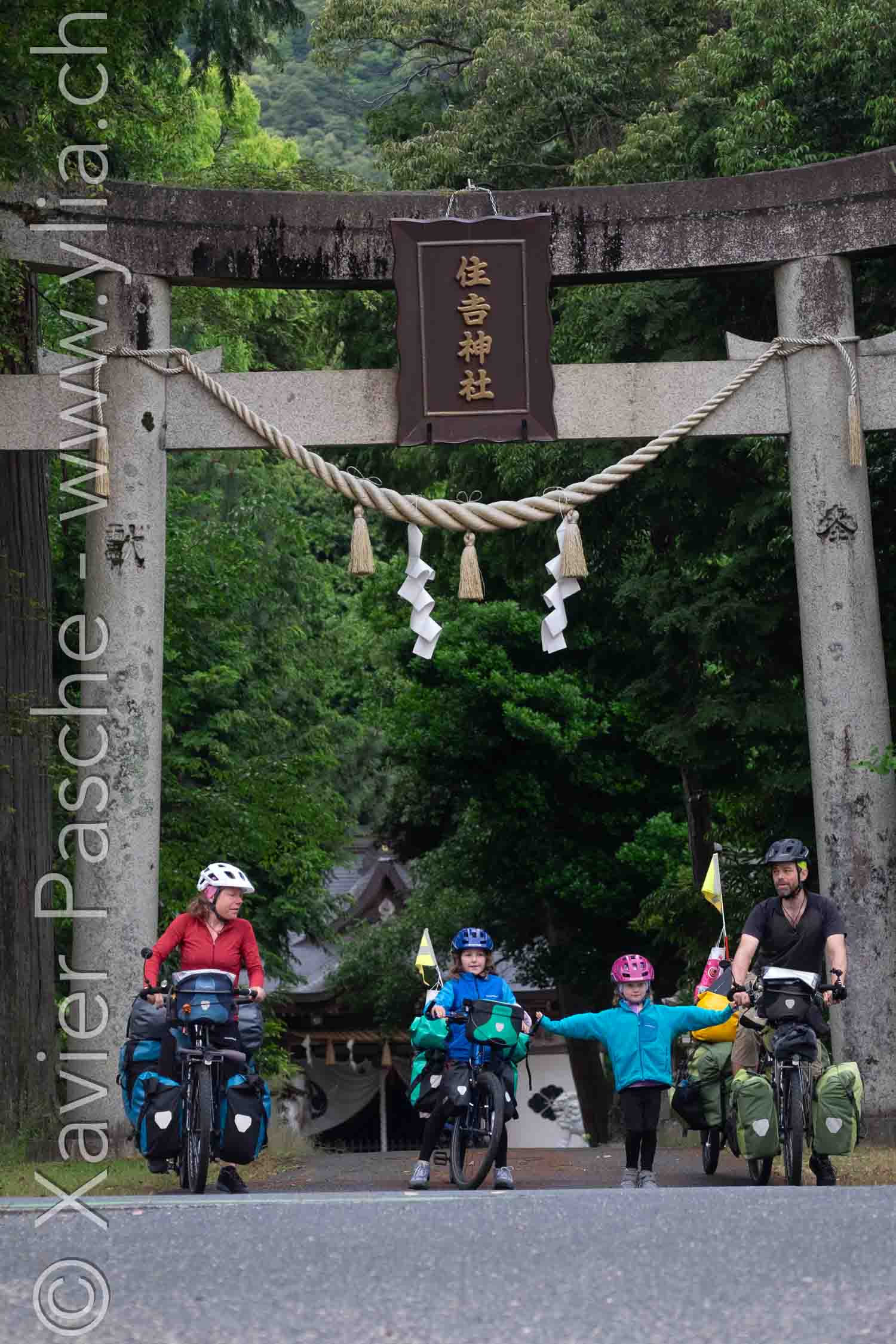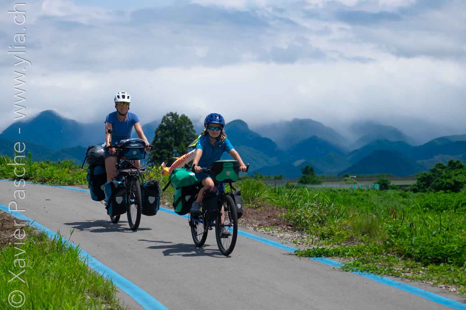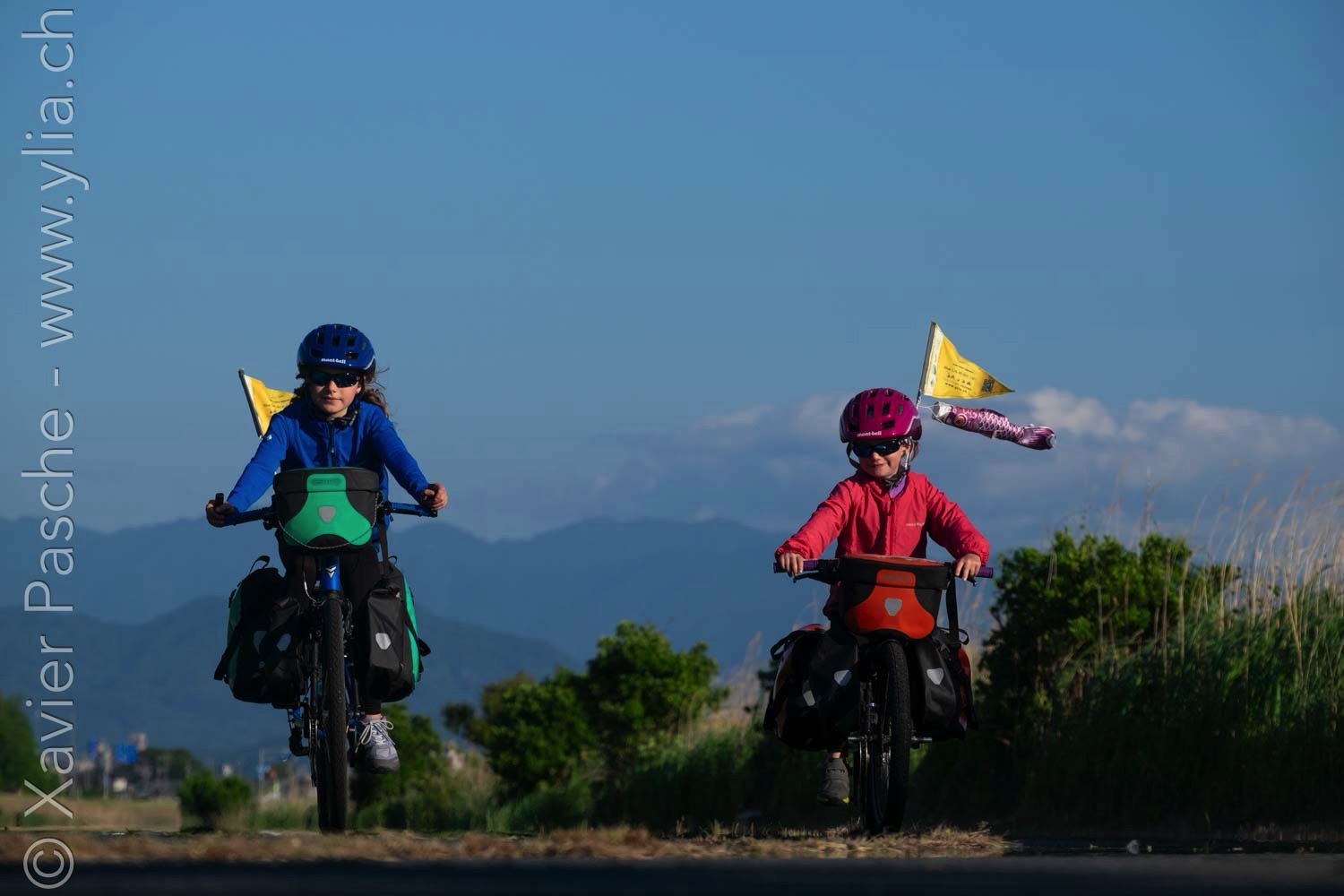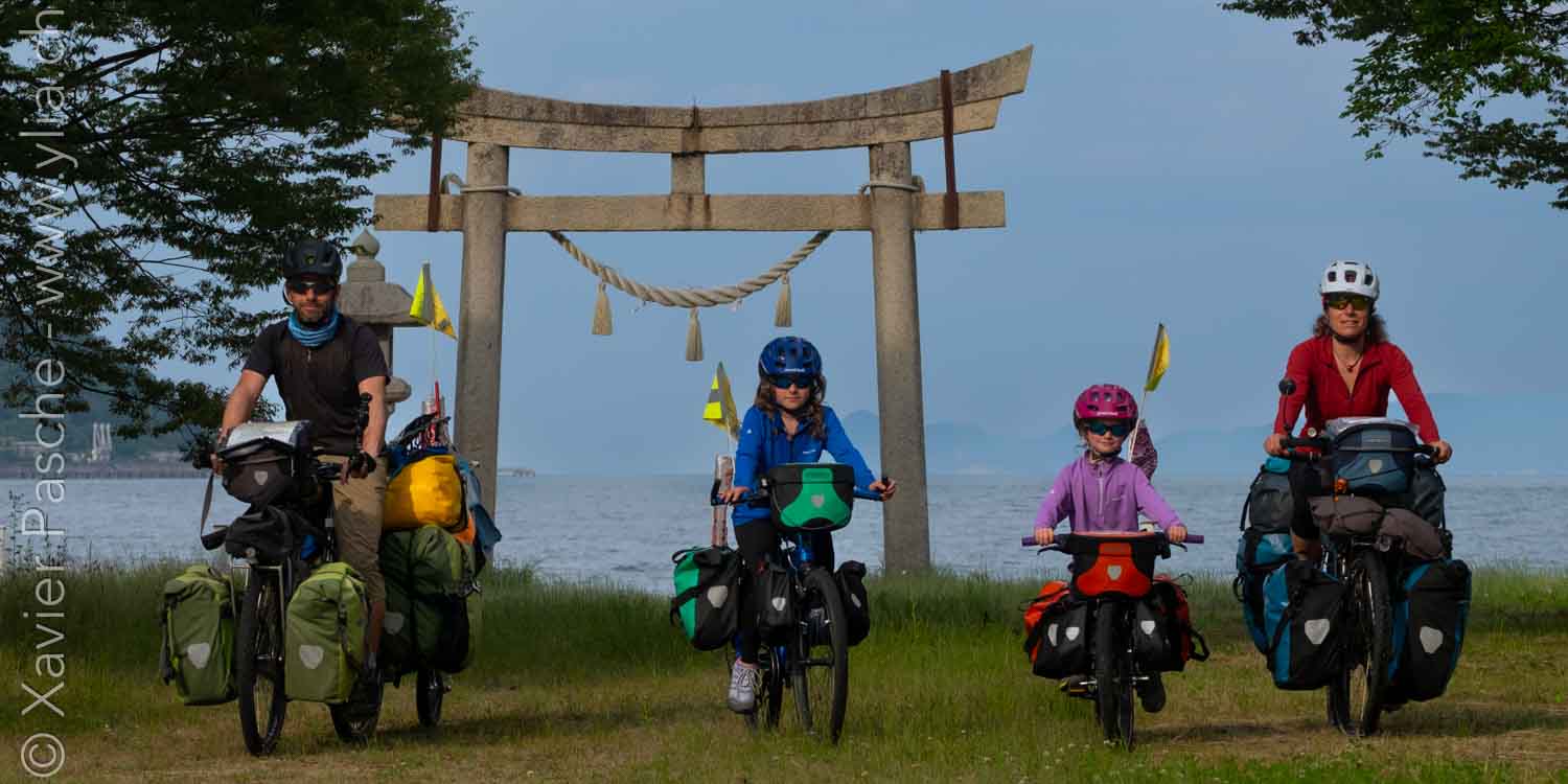 We were able to meet the intense challenge of reaching all the talks solely by bicycle. This was made possible by our 13 years of experience on the road of the world. It was also a huge challenge for our daughters. Nayla, aged 10, cycled the entire route on her bike, sometimes in very difficult conditions. Fibie rode between 10 and 35 km every day.impulse from the girls took us back to Asia, pointing us in the direction of Japan. From an idea, a fantastic project took shape in just a few days.