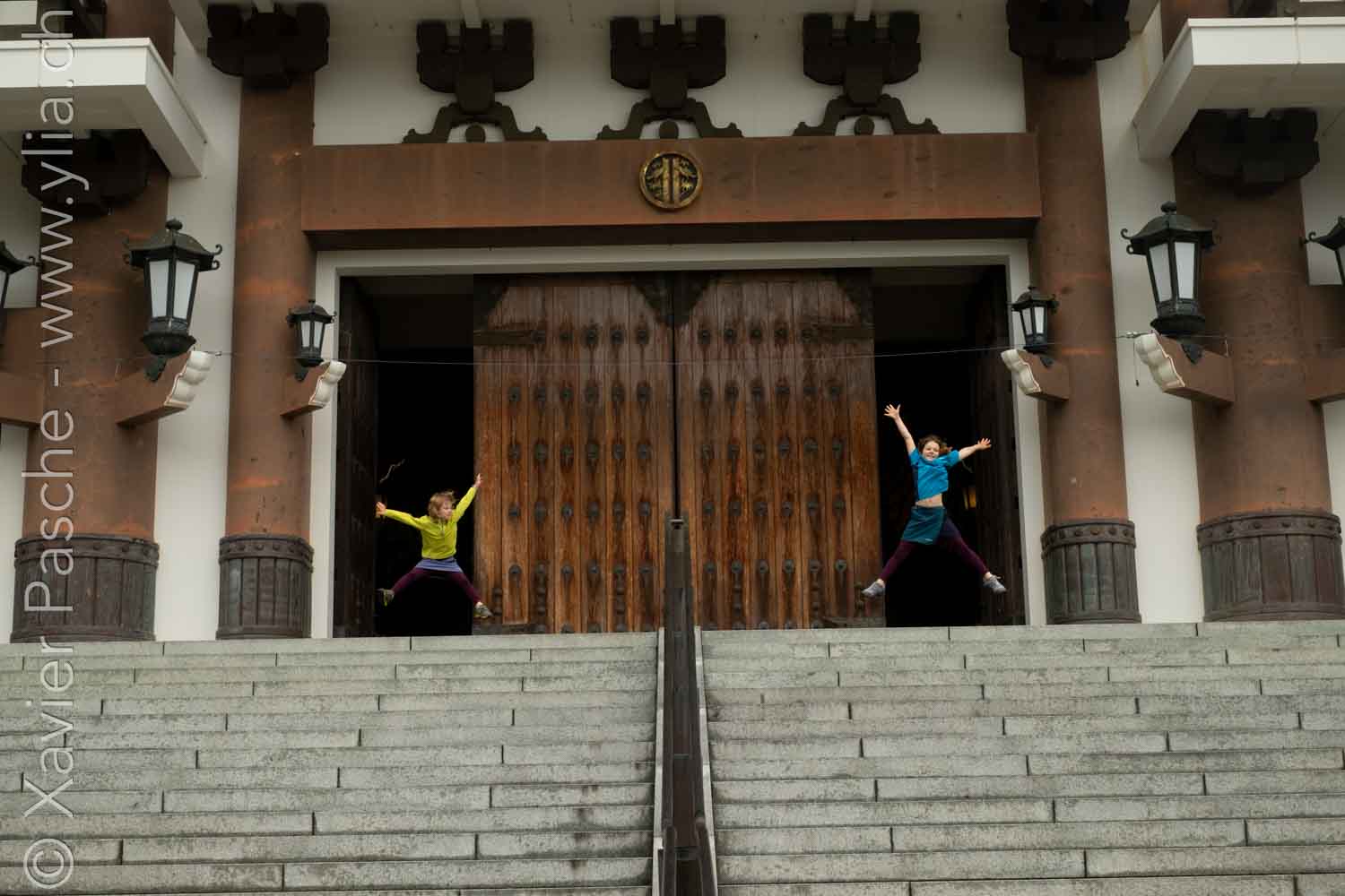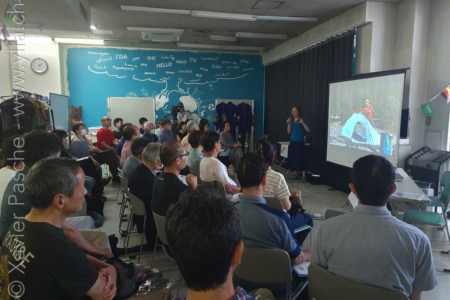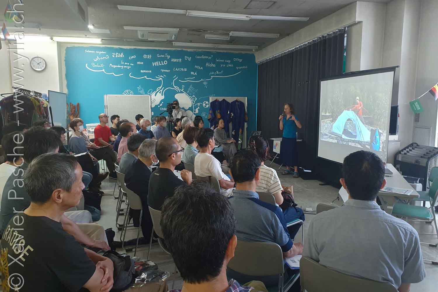 We were able to meet the intense challenge of reaching all the talks solely by bicycle. This was made possible by our 13 years of experience on the road of the world. It was also a huge challenge for our daughters. Nayla, aged 10, cycled the entire route on her bike, sometimes in very difficult conditions. Fibie rode between 10 and 35 km every day.impulse from the girls took us back to Asia, pointing us in the direction of Japan. From an idea, a fantastic project took shape in just a few days.