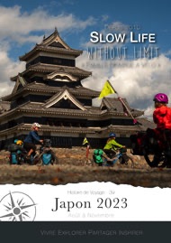 We follow this rugged coastline over endless passes. Fortunately, the lookouts offer spectacular views of the small traditional fishing villages. Above all, it is the delicious smell of jasmine that remains the symbol. It's here that Nayla is celebrating her 10th birthday, on a beach beside a Torri that opens onto infinity and a stone lantern. With the added joy of swimming in the sea. Moving inland, Fibie discovers her first castles and, above all, the small Buddhist temples and Shinto shrines along the way. They are magical, inspiring, hidden, pure and elegant places that offer us a little break, sometimes next to a bamboo forest.