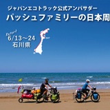 We plunge into the infinite green of Japan and its hills. We camp beside rivers and bathe in them. We even discovered a waterfall under which Nayla spontaneously took a shower! We then rejoined the coast and drove around the Noto peninsula, the one we'd heard so much about. We cycle for over 8 km along the beach, euphoric as we race against the waves. We discover dried octopus markets, salt villages that still use traditional methods to extract salt from the sea, and the rice terraces that have shaped the Japanese landscape for centuries. "Dolphins" Fibie shouts after losing her first tooth. Their leaps bring us the light-hearted, mischievous energy of play!