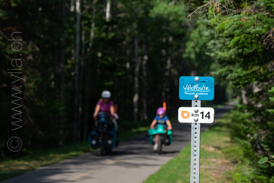 We cross the line which takes us to the province of New Brunswick. Nayla is happy to speak English again, as if it were the language of the journey. And Fibie wonders if she will be able to swim in the sea, lakes and rivers. For my part, I feel a deep sense of relief. The tension on the roads was so intense that it had almost taken the joy out of cycling, with most drivers speeding past us, often without realising it. Here, at the first crossroads, it's already different.