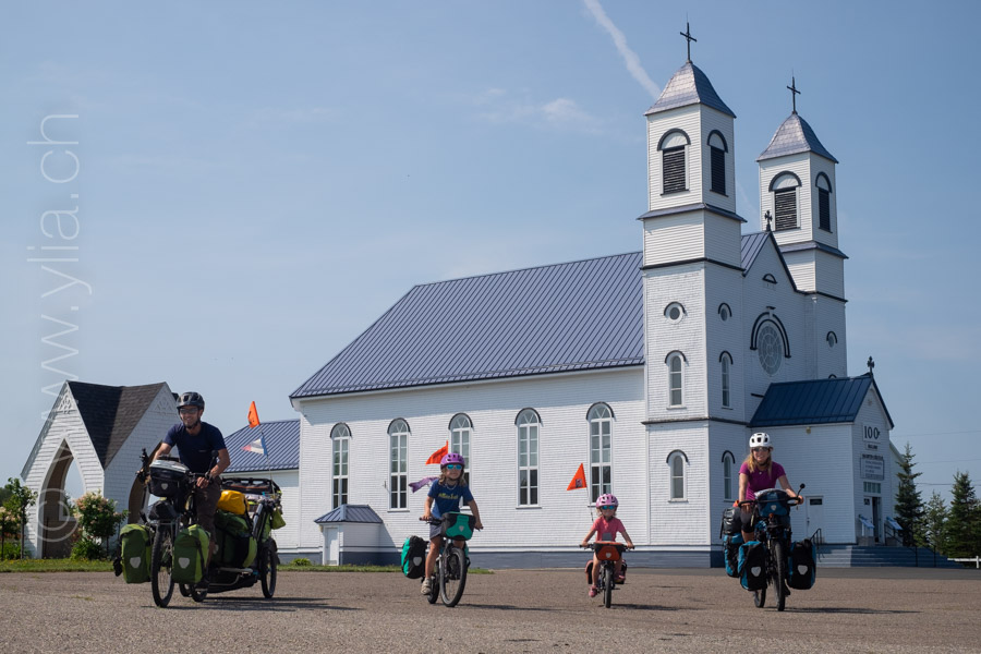 Immediately, we feel the outlines of what will tint our experience. A magnificent welcome. From the banner made by a family, it will grow day by day, to celebrate our nomadic and adventurous way of life. Above all, it will be an encounter with the Acadian people and their infinite generosity.