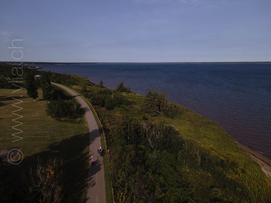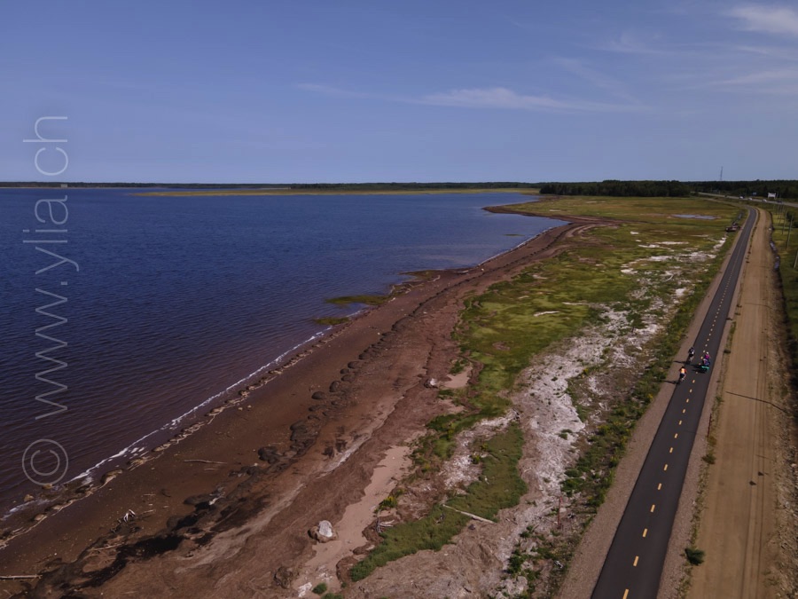 We discover the velo route of the Acadian Peninsula. This is where we celebrate our 80'000 km on the roads of the world. A symbolic figure in this nomadic life. For Nayla, it's already 43,000 km. Fibie has been a nomad for 18,000 km, mostly in the heart of the wilderness. Here she is euphoric because she can finally cycle on her own to discover this land surrounded by the sea. On one side, the warm waters of the Baie-des-Chaleurs and on the other, the Gulf of St. Lawrence and its exceptional marine life.