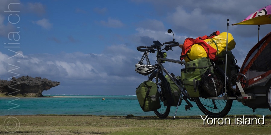 We are going north from island to island. The landscapes are truly amazing. They captivate us. Nature shows its purity. Each one of these islands reveals its face, its panoramas and atmospheres. The colour of the ocean seems to belong to the dream world. The blues are magical, the sand white, the water is so clear. The hills are plunging into the ocean and bright red hibiscus flowers are blooming, symbol of the Okinawa Islands. The spirit of the turtle is with us, Nayla has called them many times and hoped to meet them so much. And magic happened, Nayla could swim with one of them!