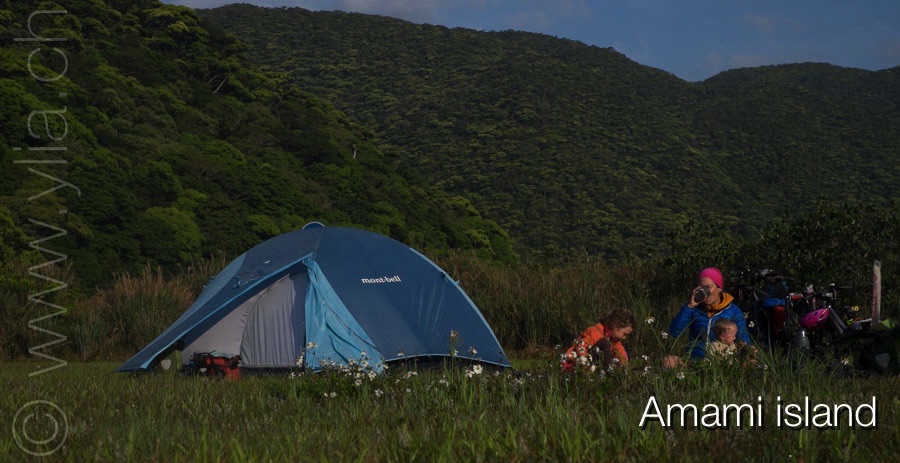 The meetings are moving. Nayla is invited in the schools to follow some classes and learns how to plant the rice. She also learns to fish with Zamami San family, who welcomes us with open arms. Besides, they don’t let us go without making an omamori, a protective handmade talisman with shells that we picked up on the beach. These talisman are now on our bikes, protecting us.