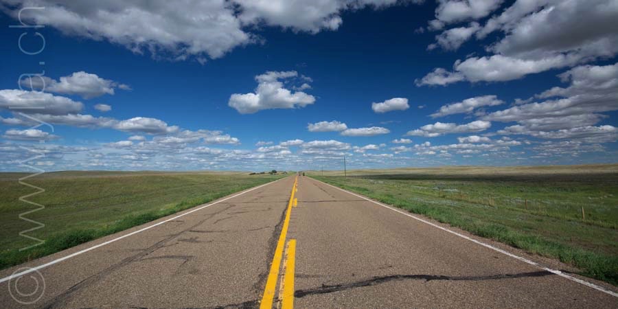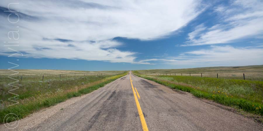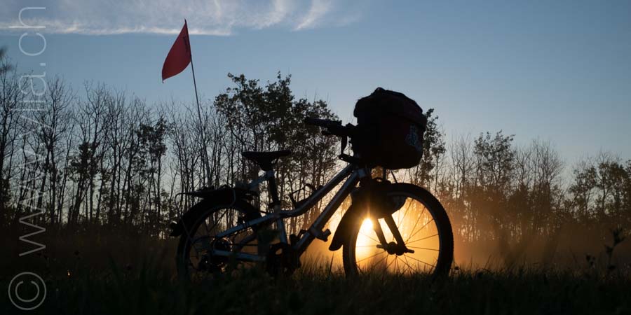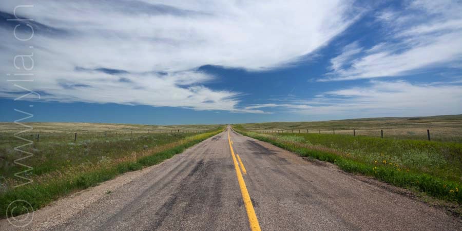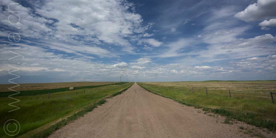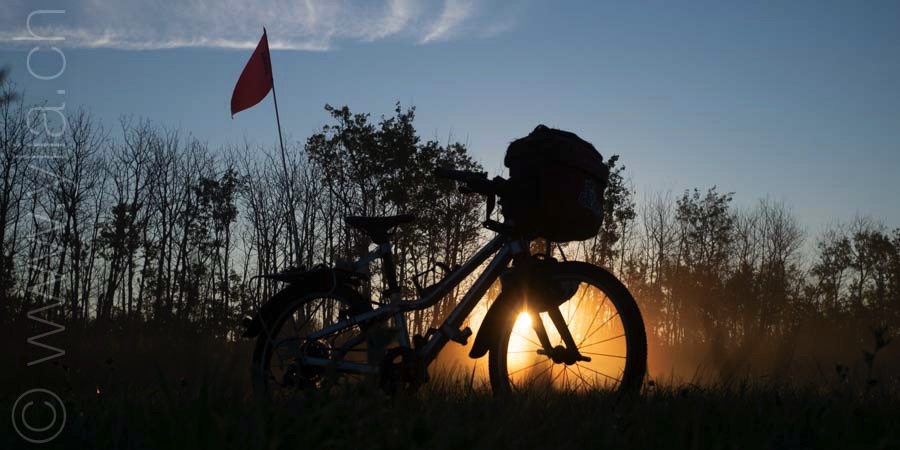Cycling in the prairies is to imbue all our senses with what surrounds us. When the eyes plunge into a monotonous mantra, the other senses open, to let in new perceptions. Smells are unique. Each breath raises the scents of aromatic plants, sometimes sweet, gentle, delicate, exquisite or velvety. The song of crickets or that of birds accompany us from dawn to dusk in vivid symphonies or the regular chorus of insects. Even our skin brings us sensations, when it is not the hundreds of mosquitoes that bite us. The gaze then shifts, it surprises three Great Horned Owls in their flight. It spots the antelopes that frolic in these vast prairies. It is the fastest mammal in the northern hemisphere and can detect movement up to 6.5 km away. Then it is the aerial choreography of about thirty pelicans, or wild geese that begin their migration at the end of the summer. The sky dominates the landscape. It is these blues, each day different, that infuse the earth.The clouds form aquarelle paintings, sometimes dramatic scenes. At night, only the howls of coyotes disturb the peace of the celestial vault. In this infinite sky, we feel tiny, below this dance of stars.
