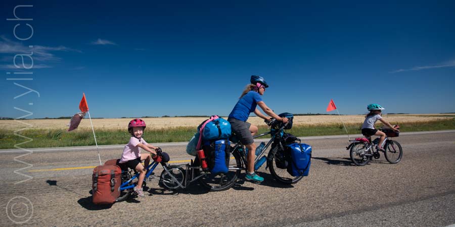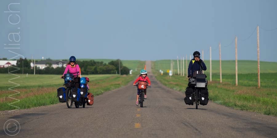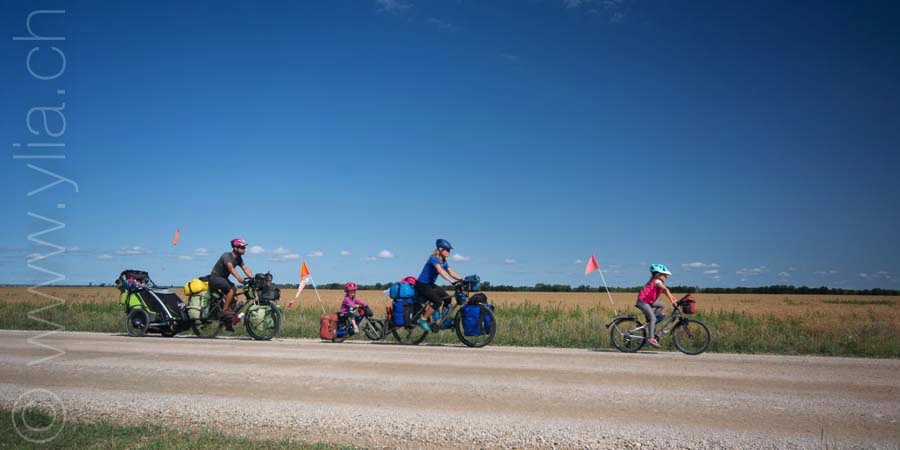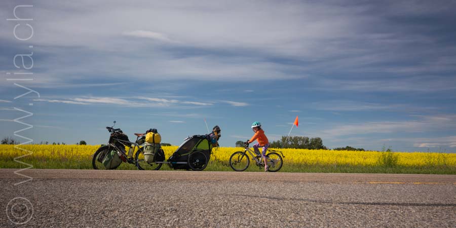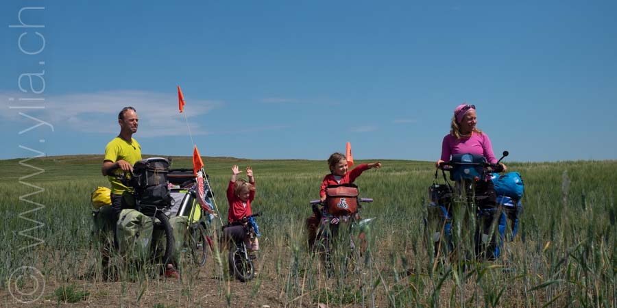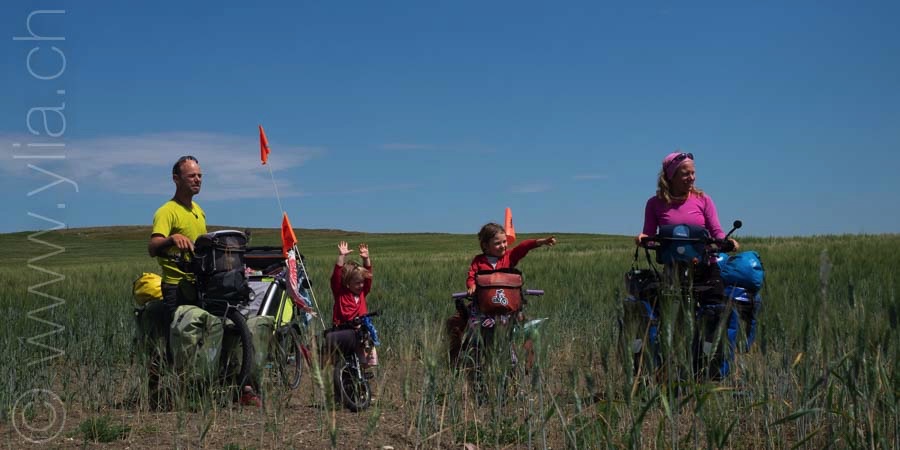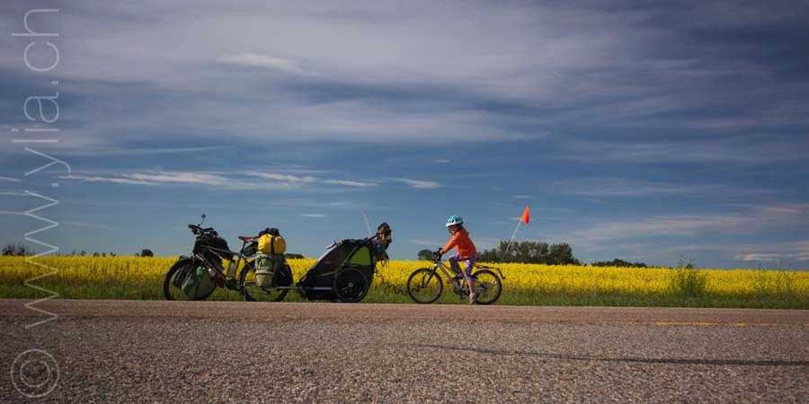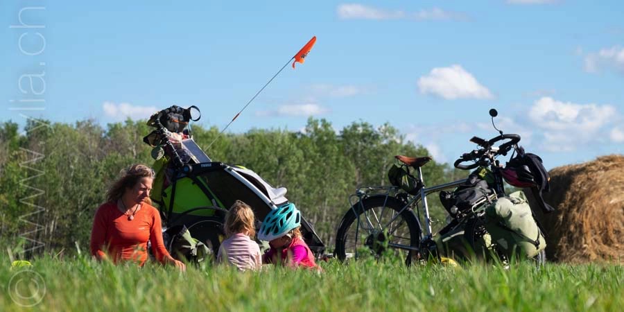 In Alberta, gigantic prairies stretch out into the horizon, like the great Mongolian steppes or the ones in Central Asia. They bewitch us with a deep sense of freedom. Darren joins us there. The girls are thrilled to have a companion on the road and his presence brings a joyful and sparkling atmosphere.