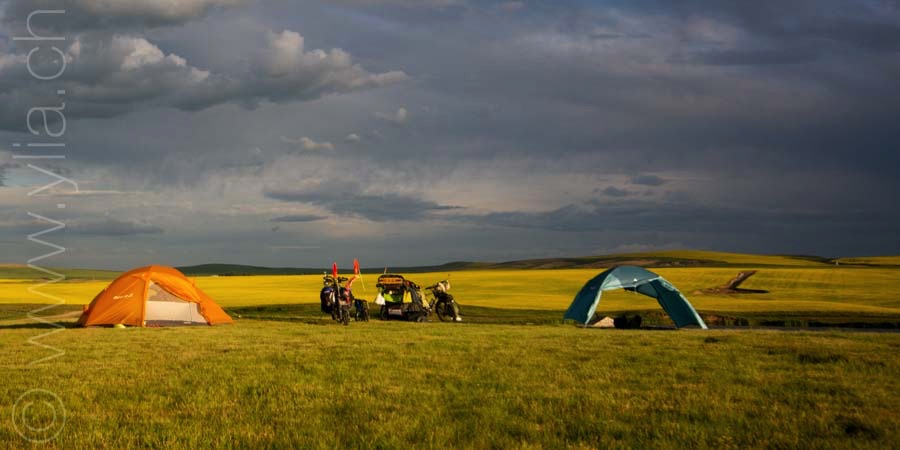 The wind has been our greatest ally and our fiercest opponent! On these vast treeless and unprotected lands, we were at its mercy, subject to its law. At times, this master of the place turned out to be terrifying. That day, an orange hue emanated from the boiling clouds. All the elements were aligned to create a tornado. A strange feeling of fear and helplessness. The fabulous thunderstorms are also one of the grandiose spectacles of the prairies. We are witnesses of their power. Once, lightning fell right next to our tent. The luminous flash was simultaneous to the great roar that tore the silence, leaving us speechless, our eyes open in the dark night. In every region, there are difficulties, dangers. In each region, we have our worries, sometimes our fears.