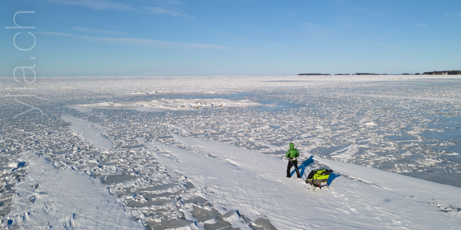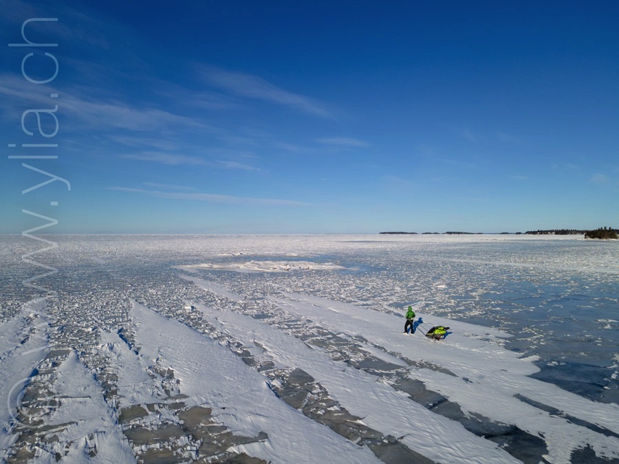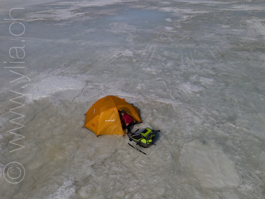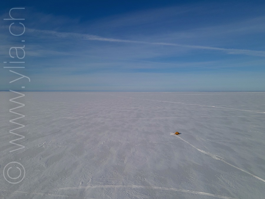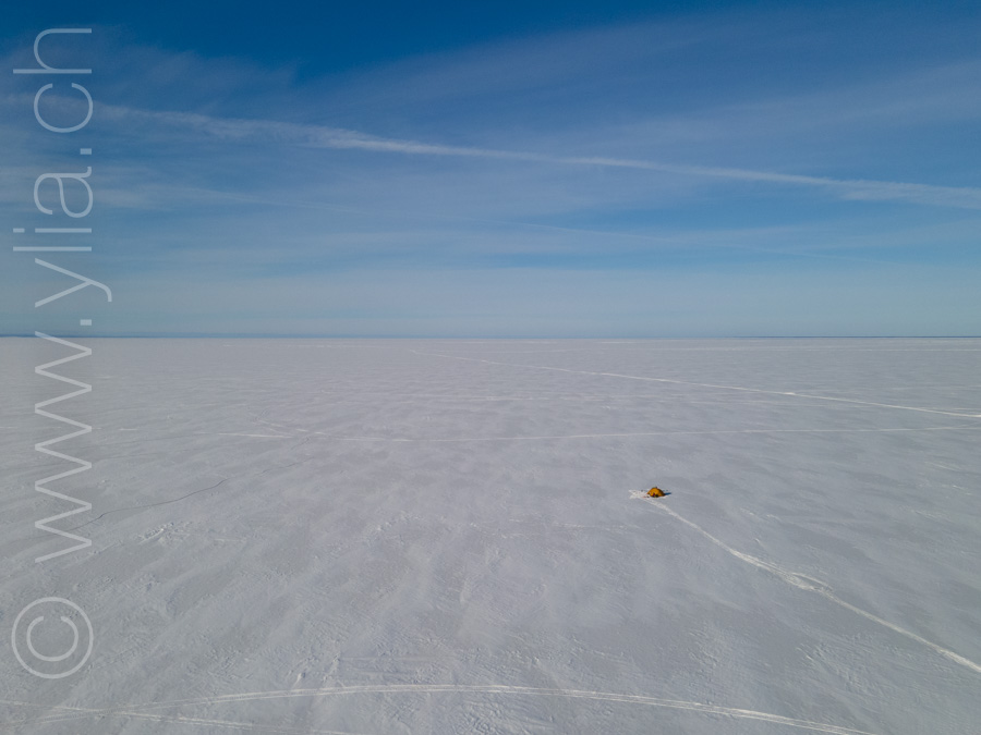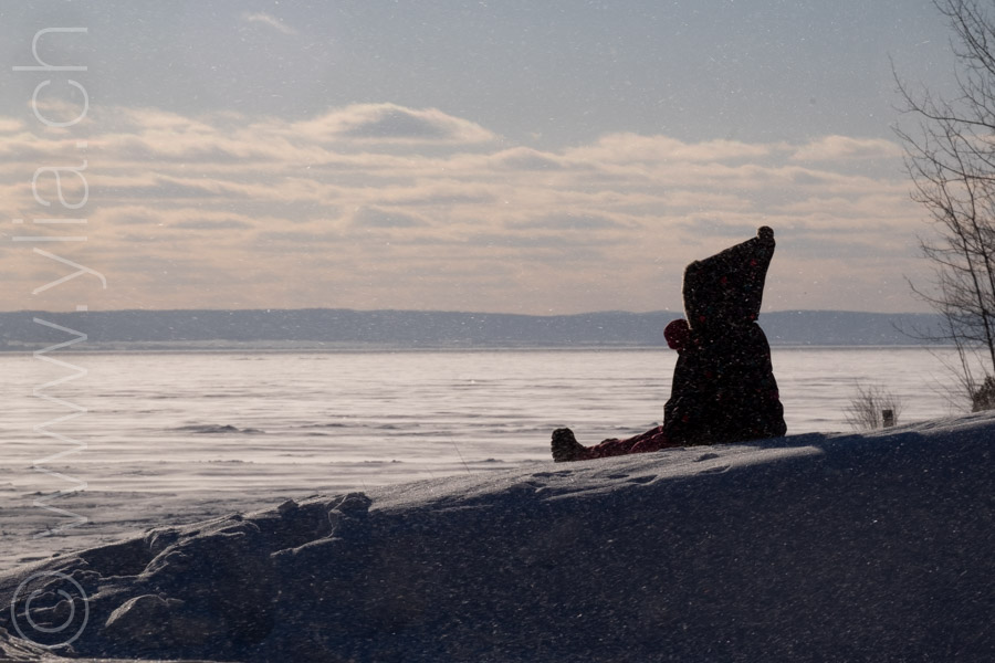 There are no natural barriers on the lake. The wind carves the snow. It can be violent, fierce. In a few minutes, it transforms this white paradise in a void with no visibility. The snow is blown into small crystals that whip our face. These powerful winds and storms also cause temperatures to drop with a wind chill approaching -35°C. In such conditions, the lake can quickly turn into a hostile place.