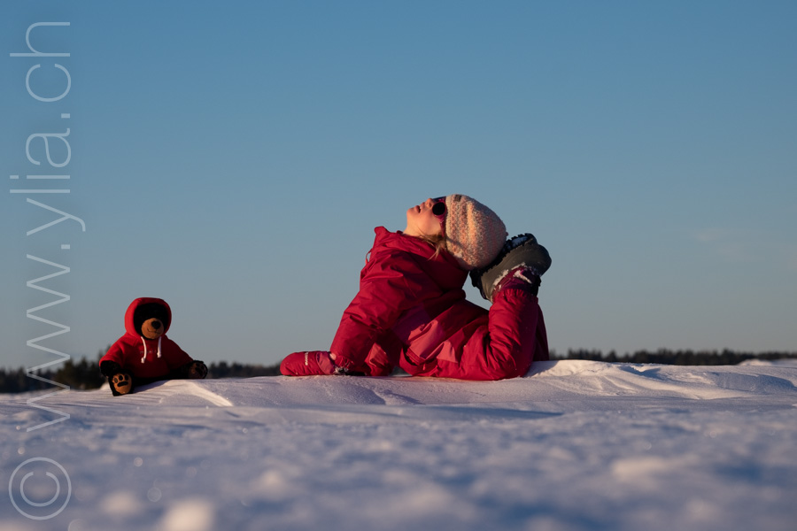 Surrounded by nature, Fibie is developing her coordination, strength and motor skills. Last summer, she rode on her own on Quebec's bike paths, in the fall she learned to swim and this winter she is skating and skiing. She learnt to stand up on her skates and to slide on the ice. In alpine skiing, she is improving tremendously, finishing the season snowploughing down the slalom of the steepest slopes in the resort, between the trees or in light powder. Always playing in English with Nayla, she speaks both languages and sometimes both at the same time. Now she has started to take her pencils not only to write her name or send mail copying sentences, but especially to draw her animal friends.