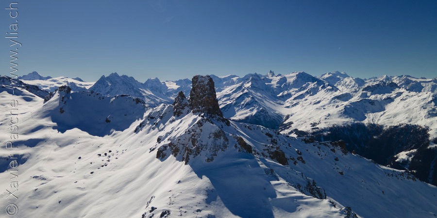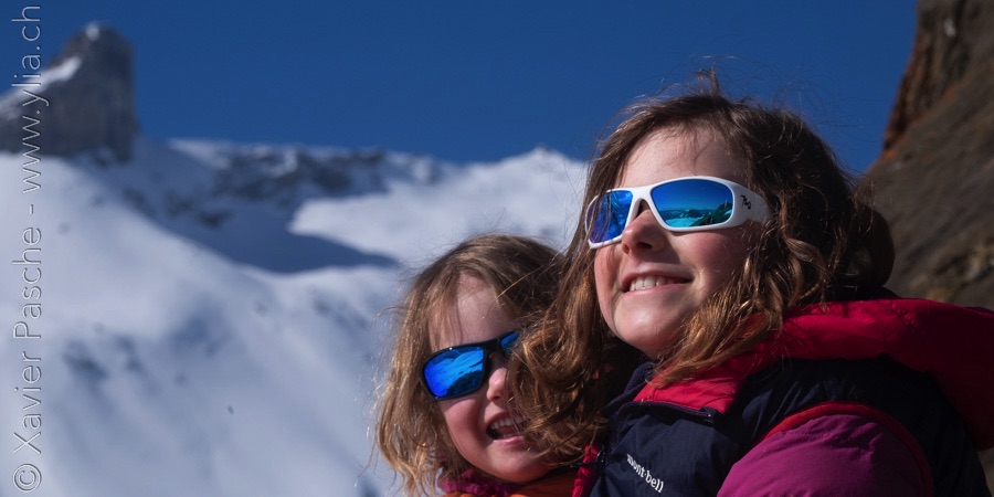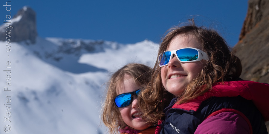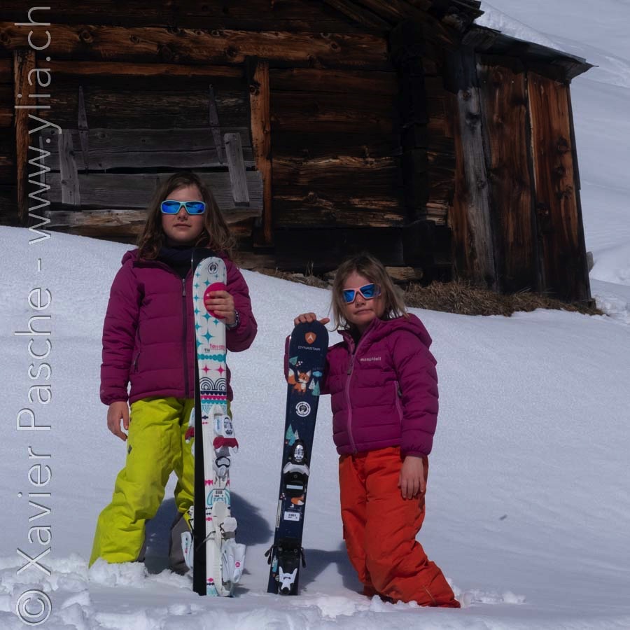 After exploring the opportunities to ski in Romania, Slovakia, Bulgaria or Georgia, we are back on the Swiss slopes. Yet winter never seems to arrive. Even when the « Empaillés » and « Peluches » from Evolène Carnaval were trying to fend off the winter demons, the sky was unfailingly blue. The girls understood the reason for the lack of snow, "the clouds have no more ideas to create new, unique snowflakes". A few weeks later, the clouds are inspired again. The long-awaited white coat has finally arrived. We are on our skis in the middle of a storm, facing brutal winds, freezing temperatures and zero visibility. Yet we celebrate the snow, both for nature's sake and for our own, the pleasure of being in this element. Then we ski for several days in a 60+ cm blanket, floating on this cold, pristine surface. Without poles, the girls ski down these slopes screaming with joy.
