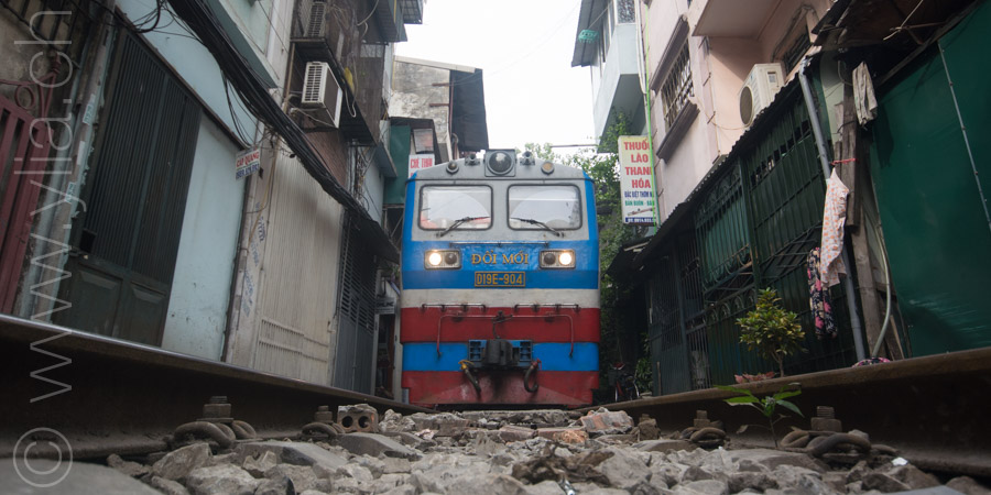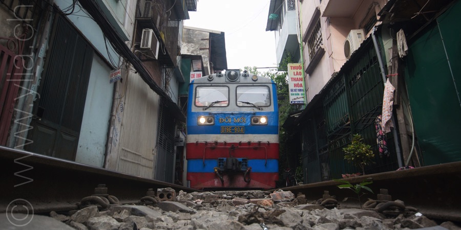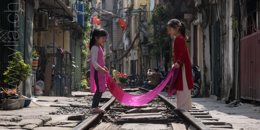 The city of Hanoi is surprising, in its life, in its bustle, in its specialities. Only women with conical hats who carry fruits and vegetables with a large pendulum bring slowness to the scene. The street of the train remains unexpected. It has become one of the capital’s emblems. Every day, the train circulates about 50 centimeters from the entrance door of the houses. The railway track passes through the middle of these small two-storey houses, joined together. For the inhabitants, it is above all a life punctuated by train. Life disappears from the path with each passage and resumes immediately after.